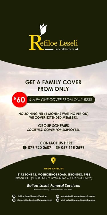 Thahameso Lifestyle Magazine publishes Nonofo Holdings monthly, but the time of the month varies and Nonofo Holdings in not responsible for slippage. Liability for failure of Nonofo Holdings to insert an ad is limited to refund of monies already paid, if any, by the advertiser for the issue affected.